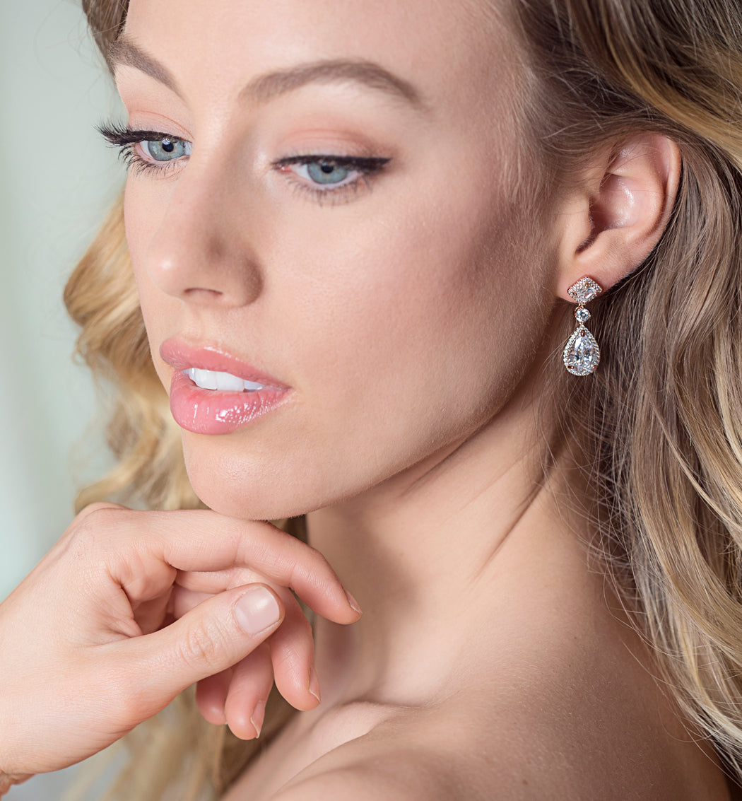 Sparkly and timeless princess cut earrings crafted with exceptional cubic zirconia teardrop crystals. These earrings will have you feeling like a classic beauty at your next special occasion. Style with a loose bun and side-swept bangs for an effortlessly romantic 'do.