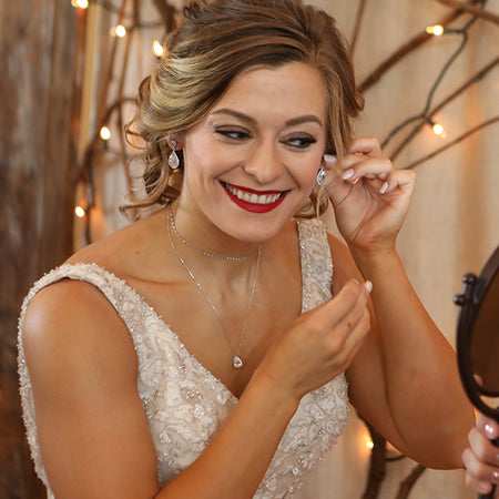 These beautiful classic drop earrings and necklace sets will surely take your breath away. Medium weight and easy to wear for long periods. Sparkles from every angle and made with the best quality materials. You'll wear this for years to come!
